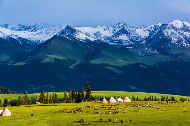 新疆地处亚欧大陆腹地,拥有广阔的沙漠、高山、草原和绿洲,其独特的地理环境使得新疆成为东西方文化交流的桥梁,新疆东临黄土高原,西接帕米尔高原,北靠蒙古高原,南邻青藏高原,形成了“三山夹两盆”的地形格局。